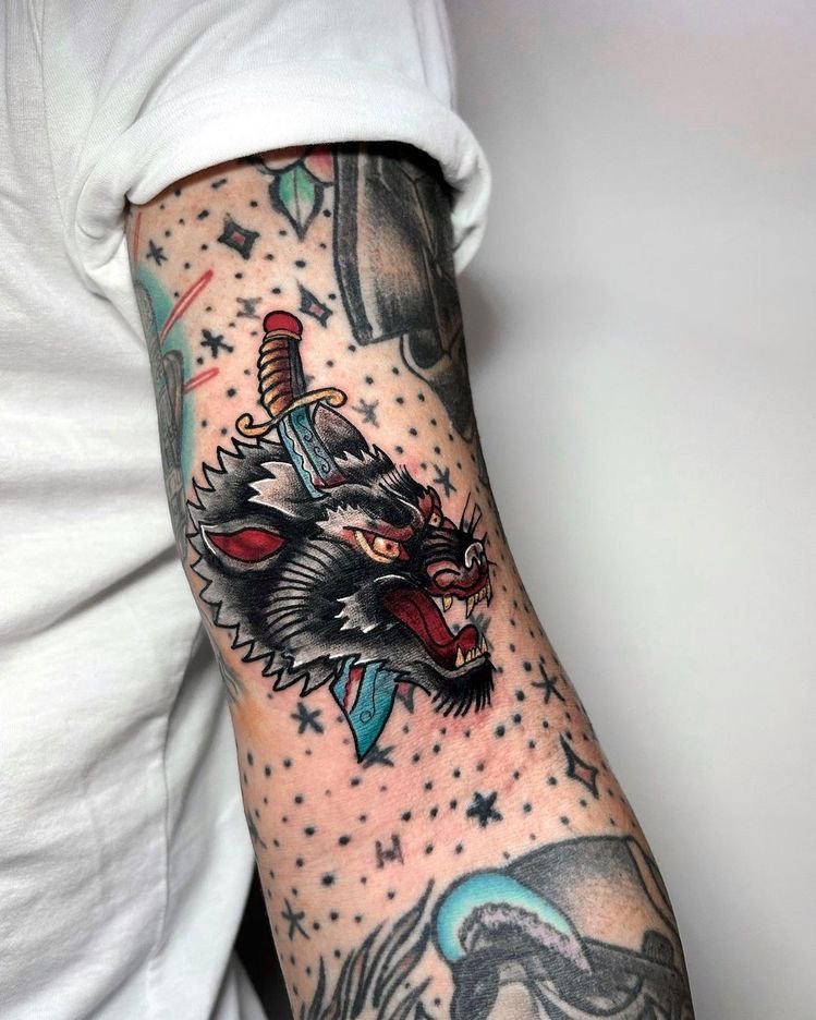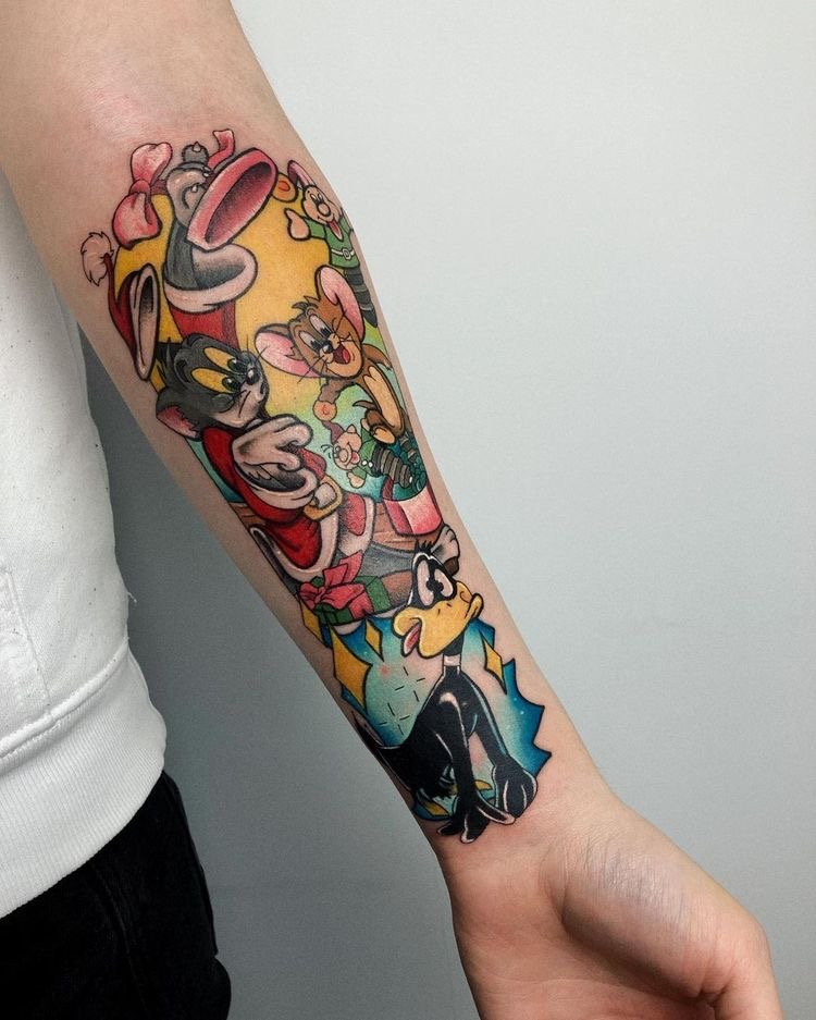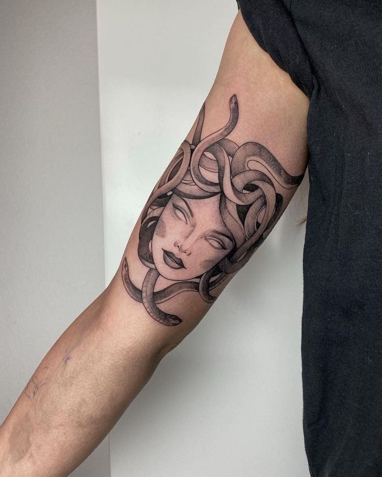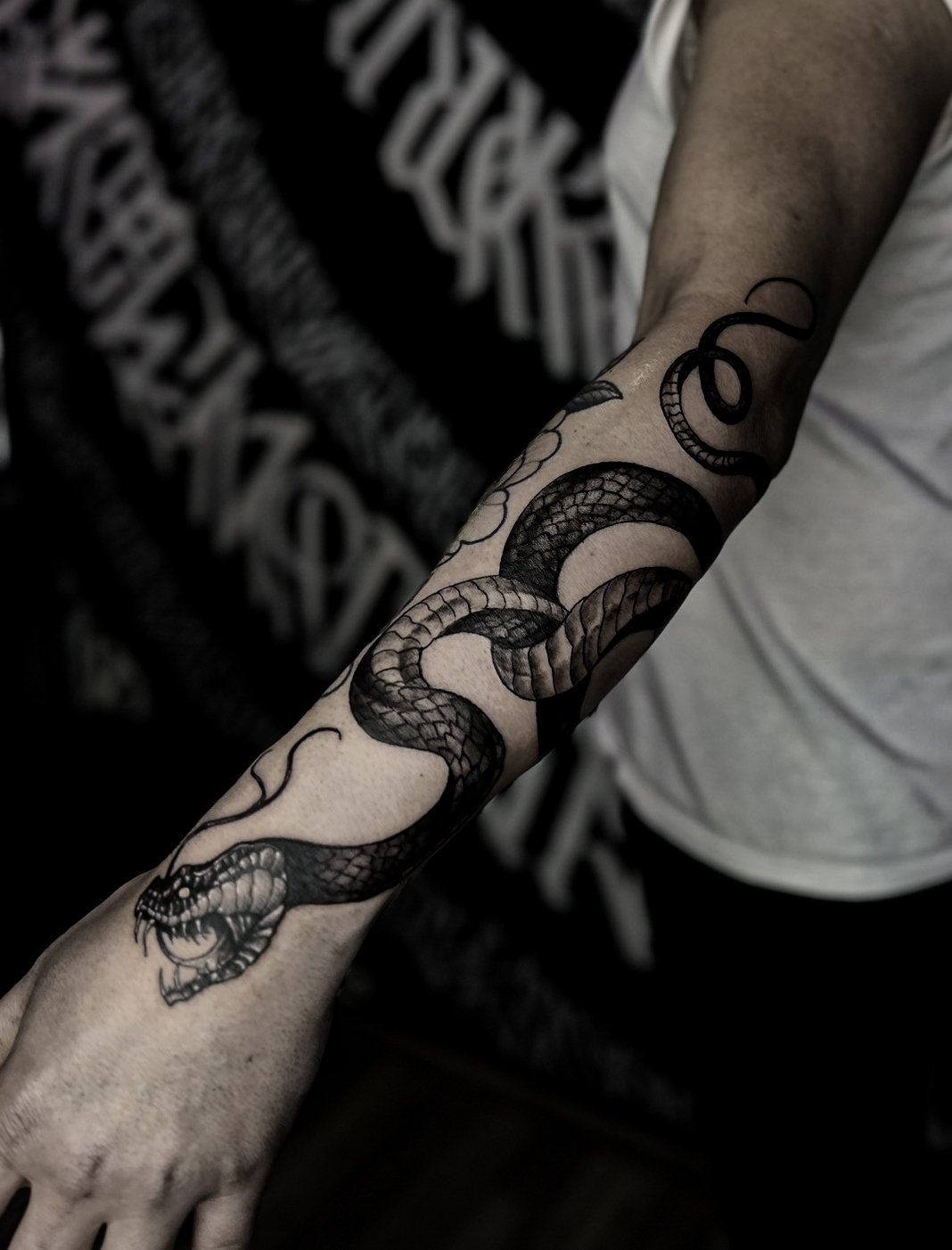 Shoulder (it is about the outer side) and forearm are not only the most popular, but also the most practical places for getting a tattoo. In these areas the sensitivity is lower and this part of the hand does not touch the body. It reduces the irritation of the injured skin. Also, these tattoos can be hidden under clothes if it is necessary (even if you have a sleeve, but only if it does not go beyond the wrist).