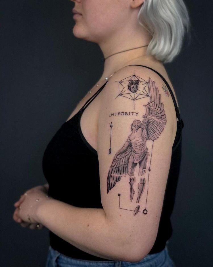 The inside part of the shoulder is rarely used as a place for drawings, because it is hidden from prying eyes and suitable for individual small tattoos (for example, inscriptions or small symbolic images).