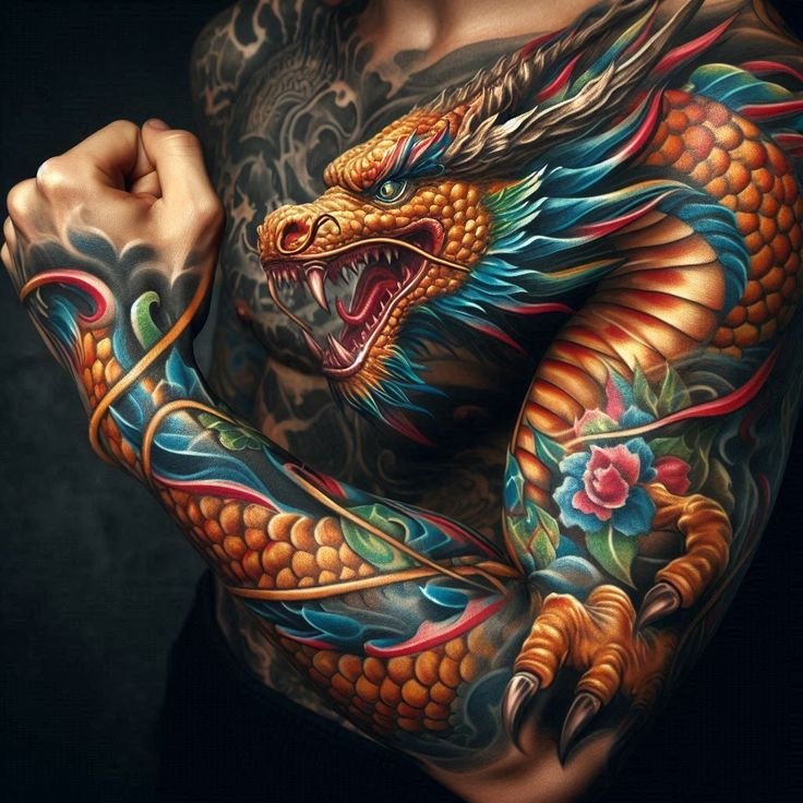 - Legs (especially calves and thighs): Provide enough space for long and detailed tattoos, such as dragons breaking through water.