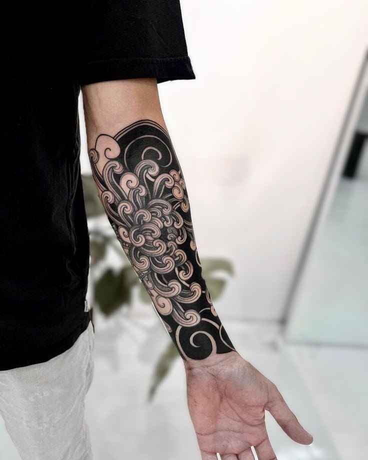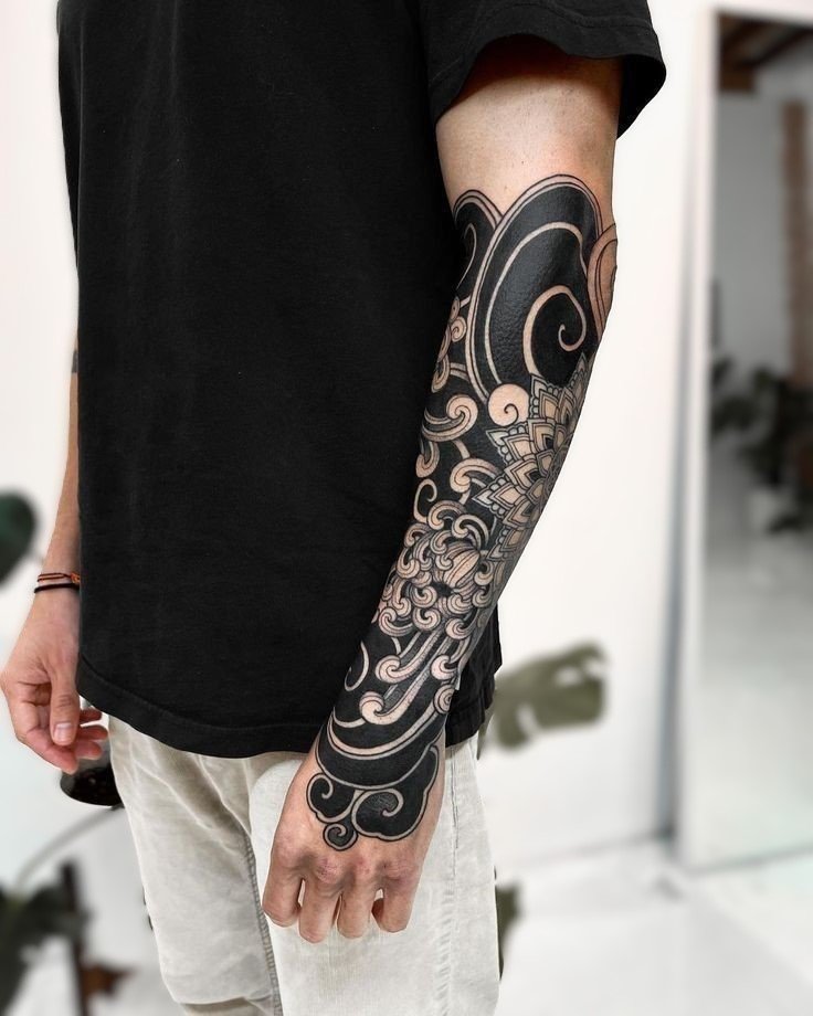 Such patterns can be executed in various sizes and styles, from small and delicate to impressive canvases covering the entire length of an arm or leg, creating elegant wave or floral motifs, each speaking its subtle language of aesthetics and harmony.