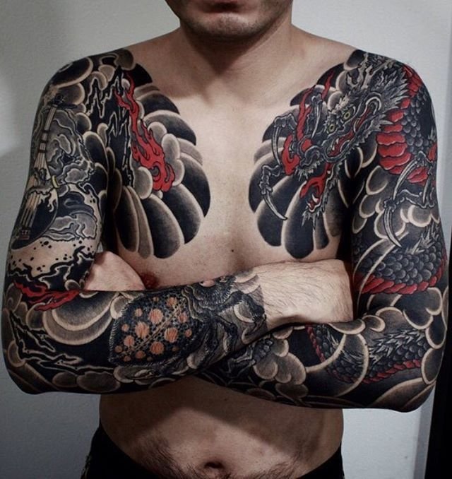 For men, choosing oriental tattoos, ideal places for application often characterized by space and visibility, allowing for a full display of details and the dynamics of large compositions.