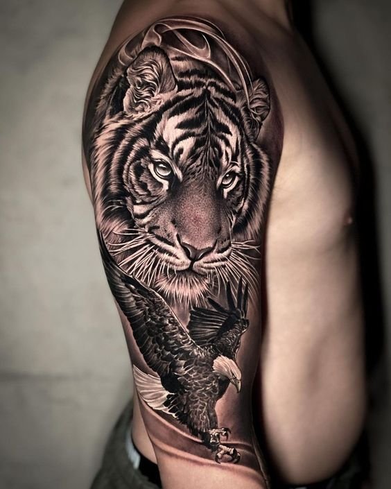However, their goal is always to recreate the face of a majestic predatory beast. These tattoos are quite complex and detailed. They demonstrate every strip, mustache, fur and muscle of the animal, and in good quality, and therefore require a lot of time and internal resource.