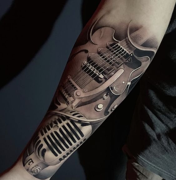 Interaction with it during rehearsals can be called intimate and close. Think about a realistic tattoo to show the world what role a musical instrument played in your life. Thus, memory and a pleasant reminder of the importance of daily workouts will always be there.