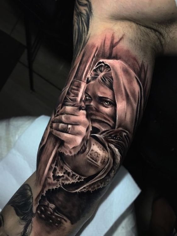 - Scary and bloody scenes for horror lovers. Thanks to this style of tattooing, film and comic book characters come to life right on the body, striking with their photorealism. Particular attention should be paid to the styling for scratches, bruises, ripped flesh, etc.
