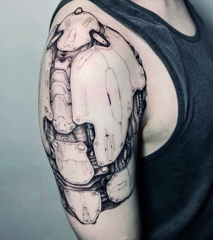 Originating in science fiction and horror films, it has now become one of the most popular directions in the tattoo world. Biomechanical tattoos not only impress with their appearance but also provoke deep thoughts about technology and the future.
