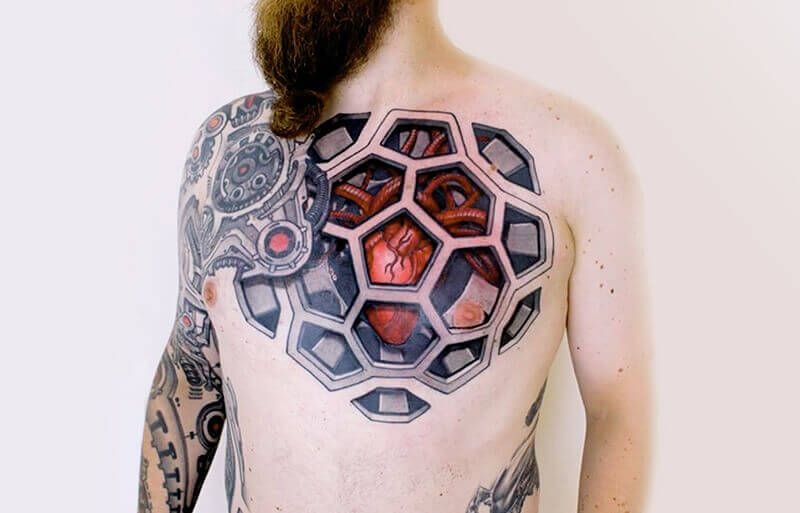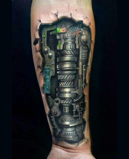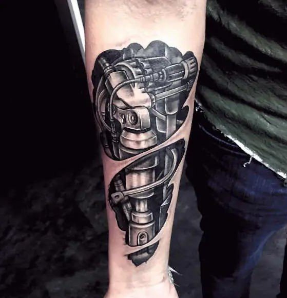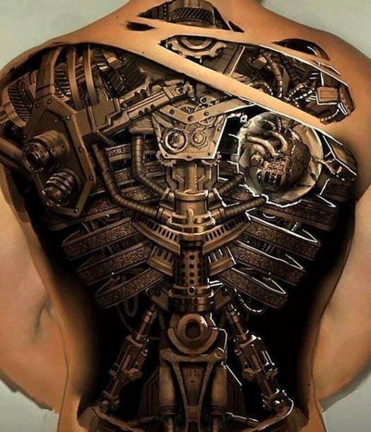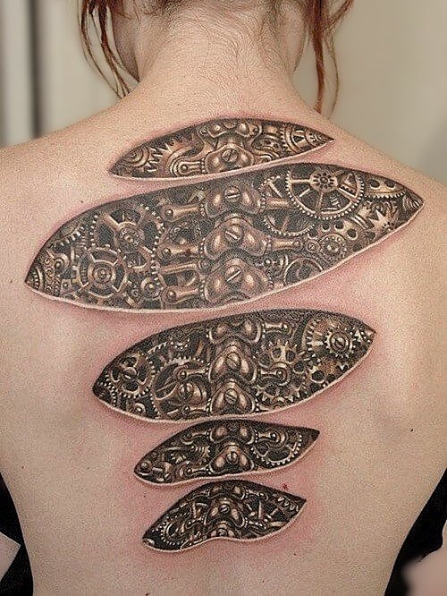 Biomechanical tattoos often intertwine not only physical but also philosophical aspects.