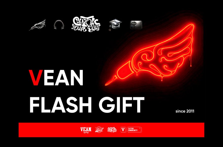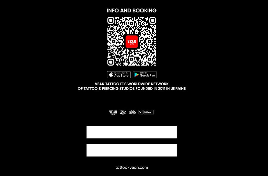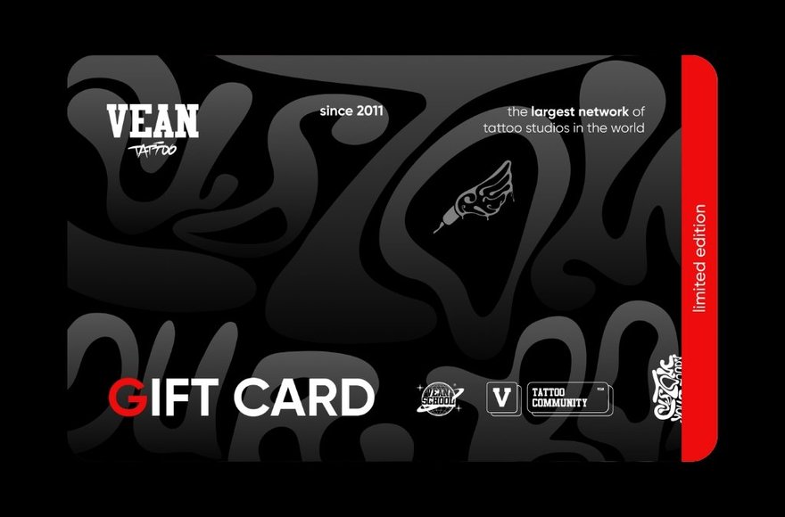 1* Universal gift certificates are available at all VEAN TATTOO studios. 2* Electronic certificates are available via the VEAN TATTOO app and the personal account.
