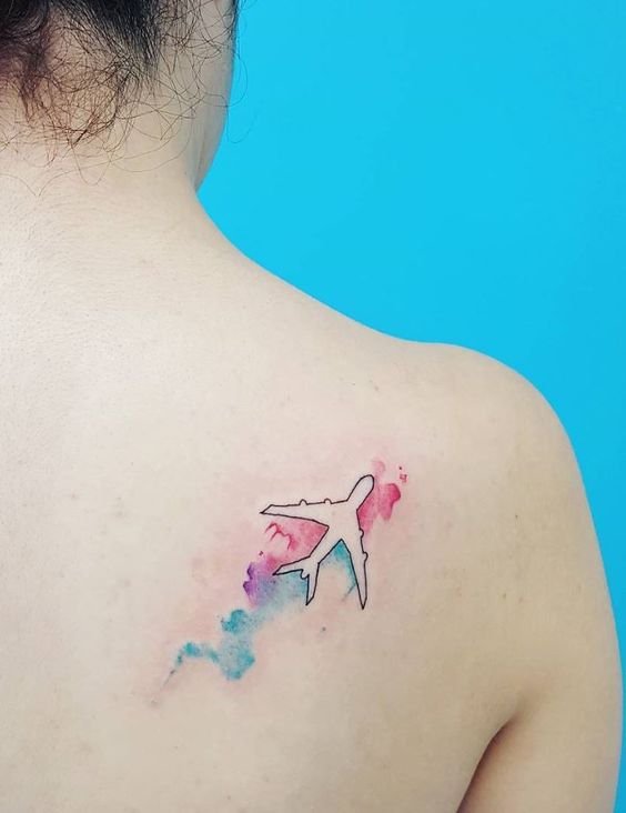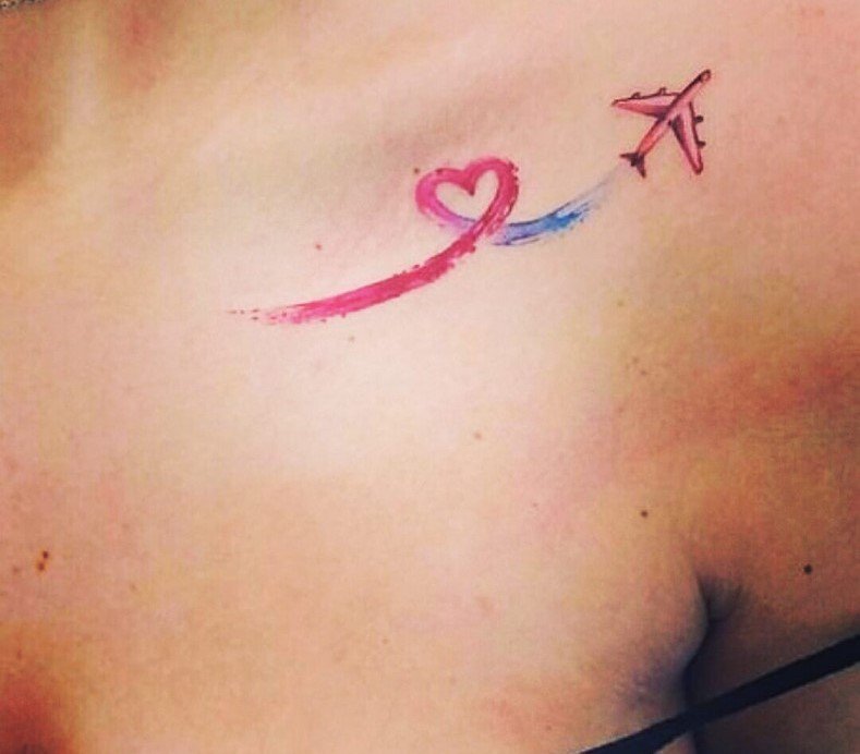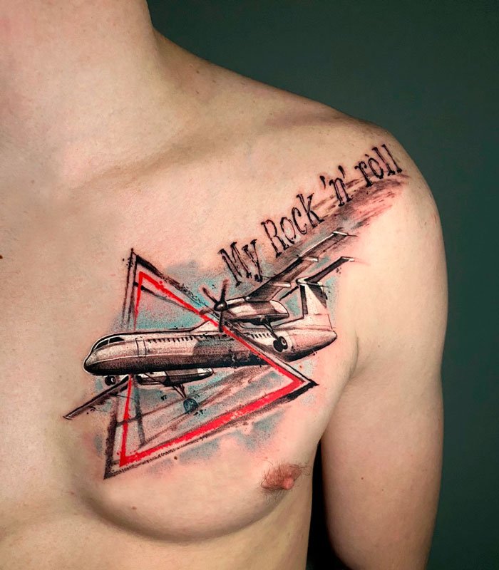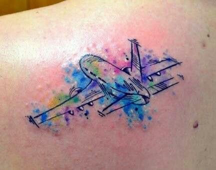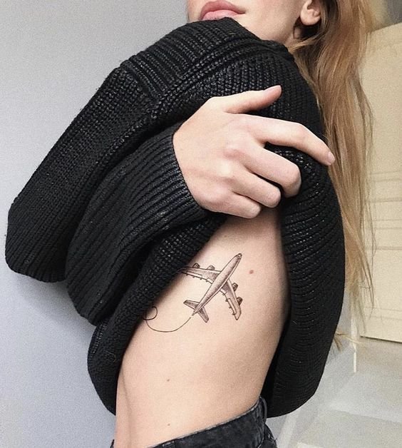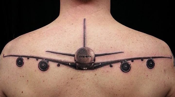The airplane is a rather popular body-art image, which is found mainly on adventurers and people who like to travel.