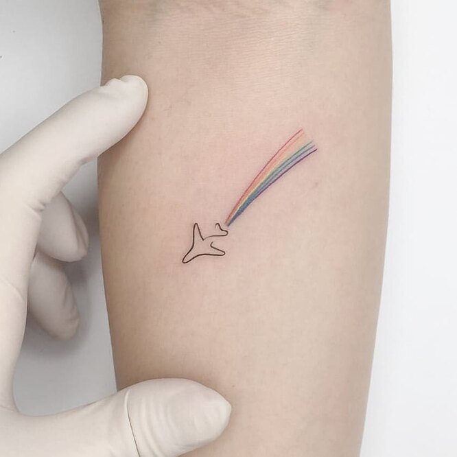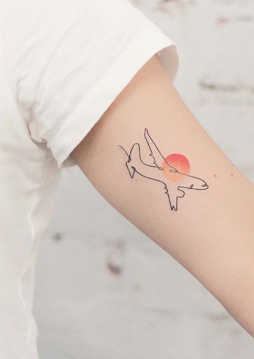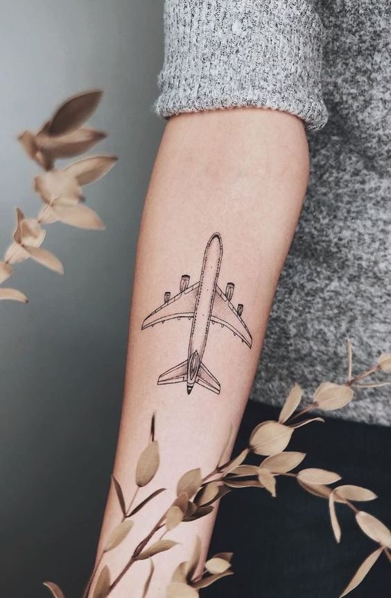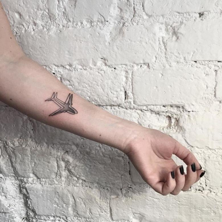 - Minimalists and compact designers often choose sketches with a silhouette or contour of the aircraft. And while this body art attracts less attention, its importance is not diminished.