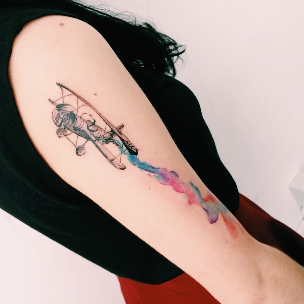 Despite the actual size of the aircraft, sketches with them are usually quite fragile, delicate and careful. Which is why people rarely have size tattoos with this image.