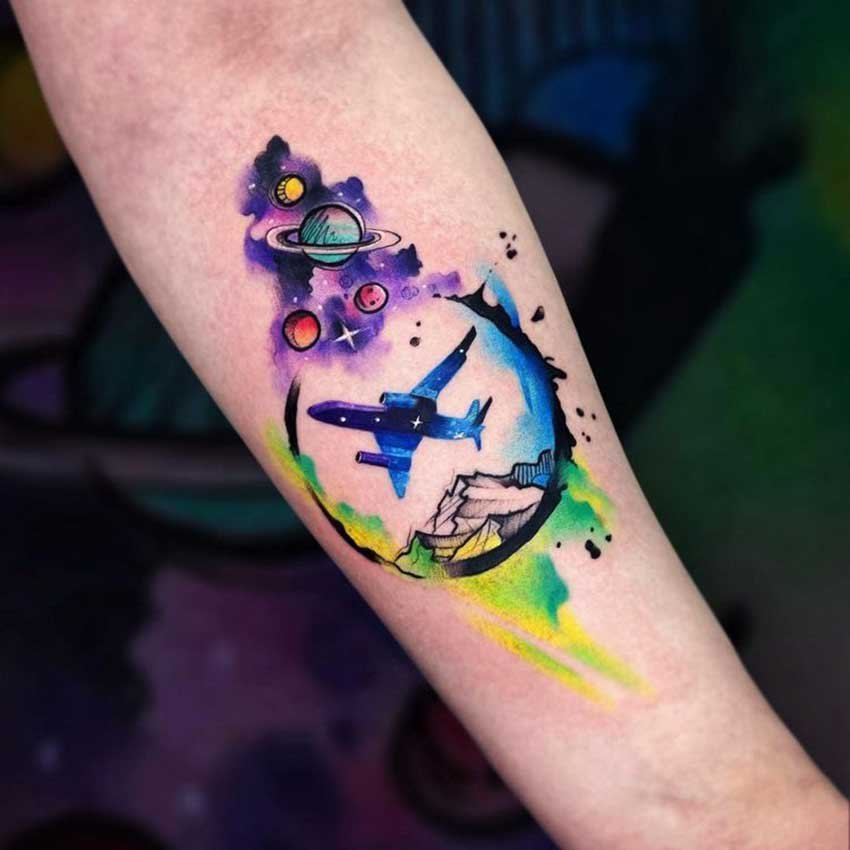 More often airplane tattoos are made on the hand, wrist or forearm.