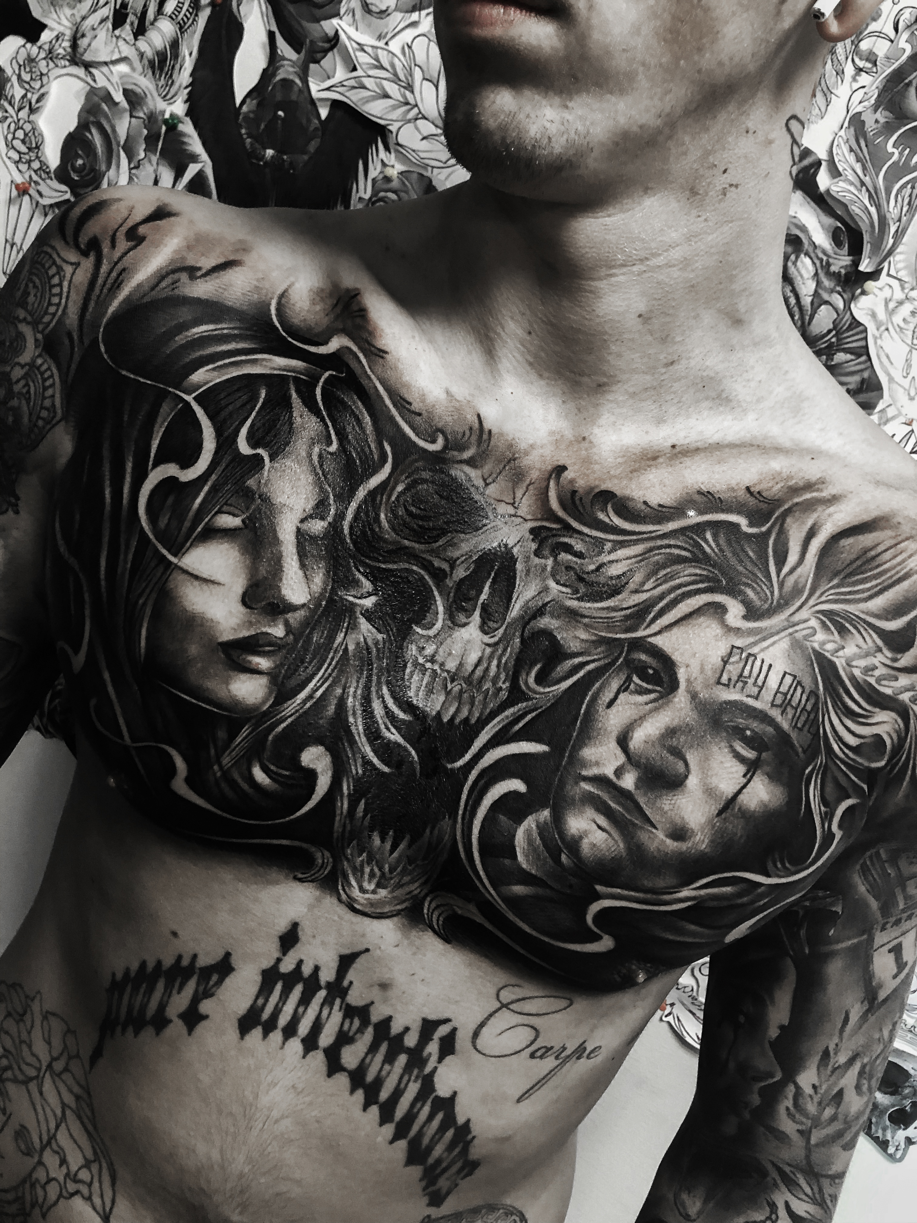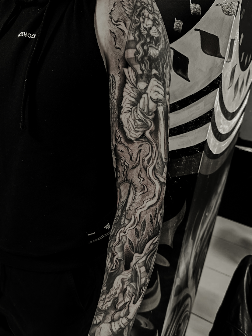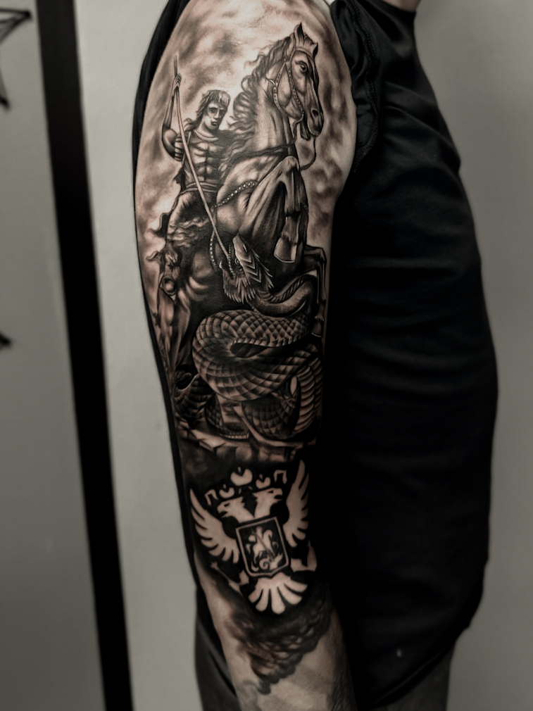 Čau, mani sauc Georgijs. Tattoo industrija esmu jau gandrīz 10 gadus, strādāju melnbalta stila, reālistiska, vip shadings, mikro-reālisms, ka arī krāsainie darbiņi. Taisu lielus projektus, visvairāk patīk taisīt cilvēka un dzīvnieka portretus. Runāju Latviski, Krieviski un Angliski. Ir liela pieredze ar dažāda tipa adu, strādāju arī citas valstis. Brīvajā laika nodarbojos ar dažveida mākslu. No Janvāra 2023.gadā, sāku macīt un vadīt meisterklsasus