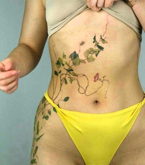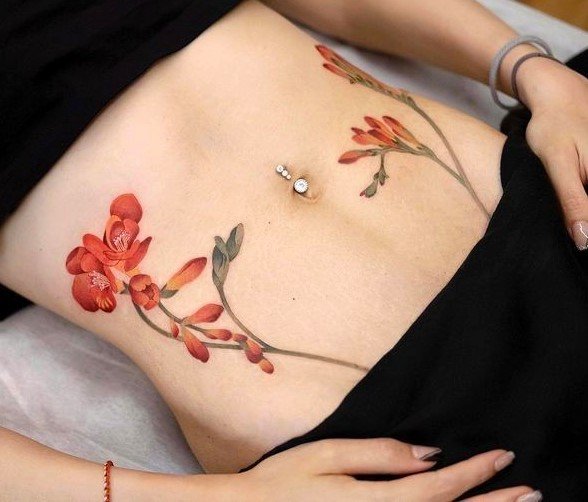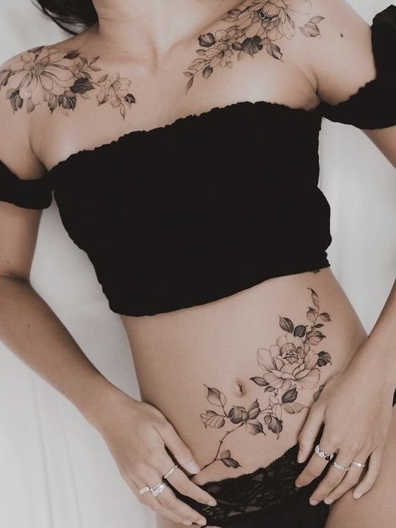 Ziedu kompozīcijas ir populāra izvēle sieviešu vidū. Šādi tetovējumi bieži simbolizē skaistumu, sievišķību un atjaunošanos. Ziedi var tikt izpildīti dažādos stilos, no reālistiskiem līdz stilizētiem, un izvietoti gar vidukli, radot izsmalcinātus un delikātus attēlus.