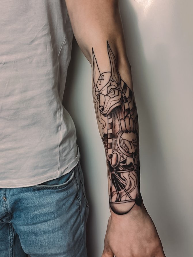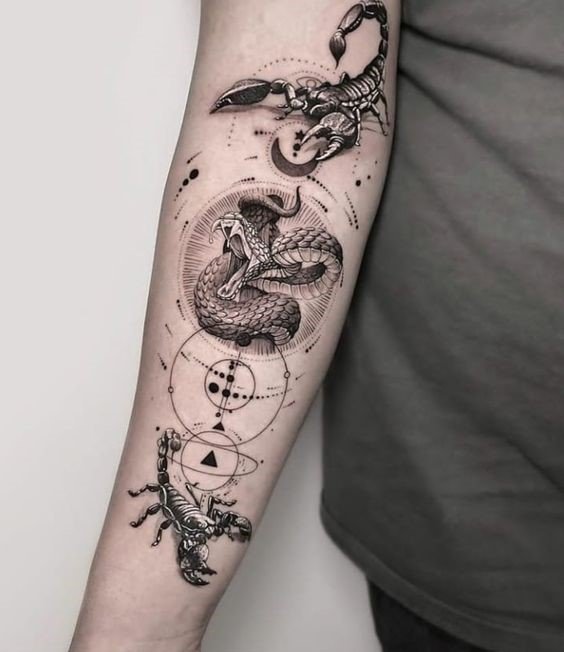 - Skorpions. Skorpiona tetovējums ir populārs vīriešu vidū pateicoties tā spēcīgajai simbolikai, kas ietver aizsardzību, nāvi un atdzimšanu. Šis simbols var arī nozīmēt bīstamību un noslēpumainību.