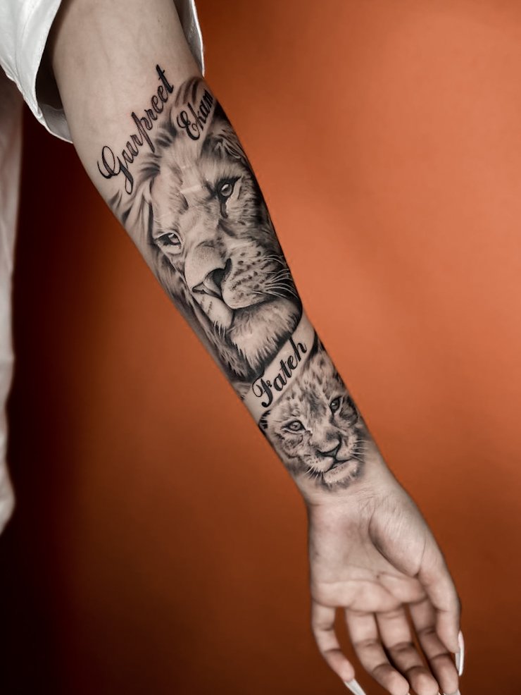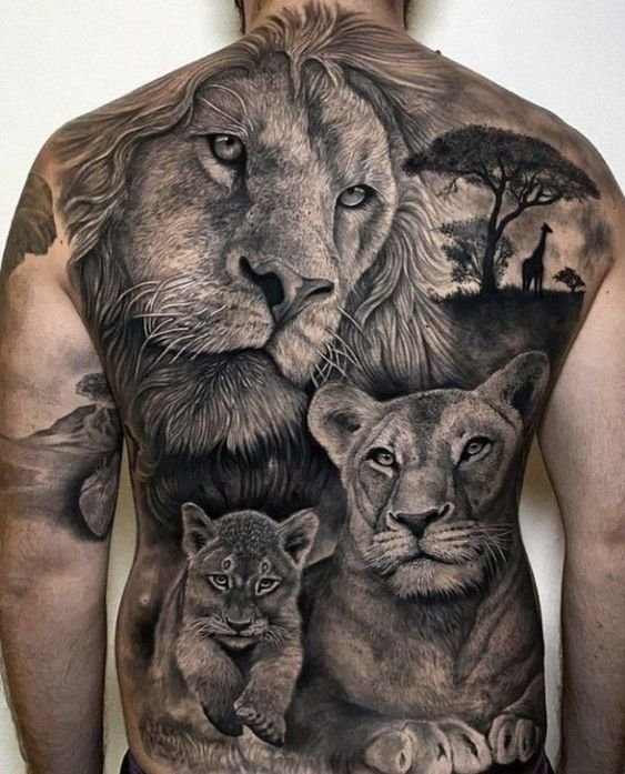 - Lauva. Lauva simbolizē drosmi, spēku un karalisko varu. Lauvas tetovējums bieži tiek izvēlēts vīriešiem, kas vēlas uzsvērt savu dominējošo lomu un vadības īpašības.