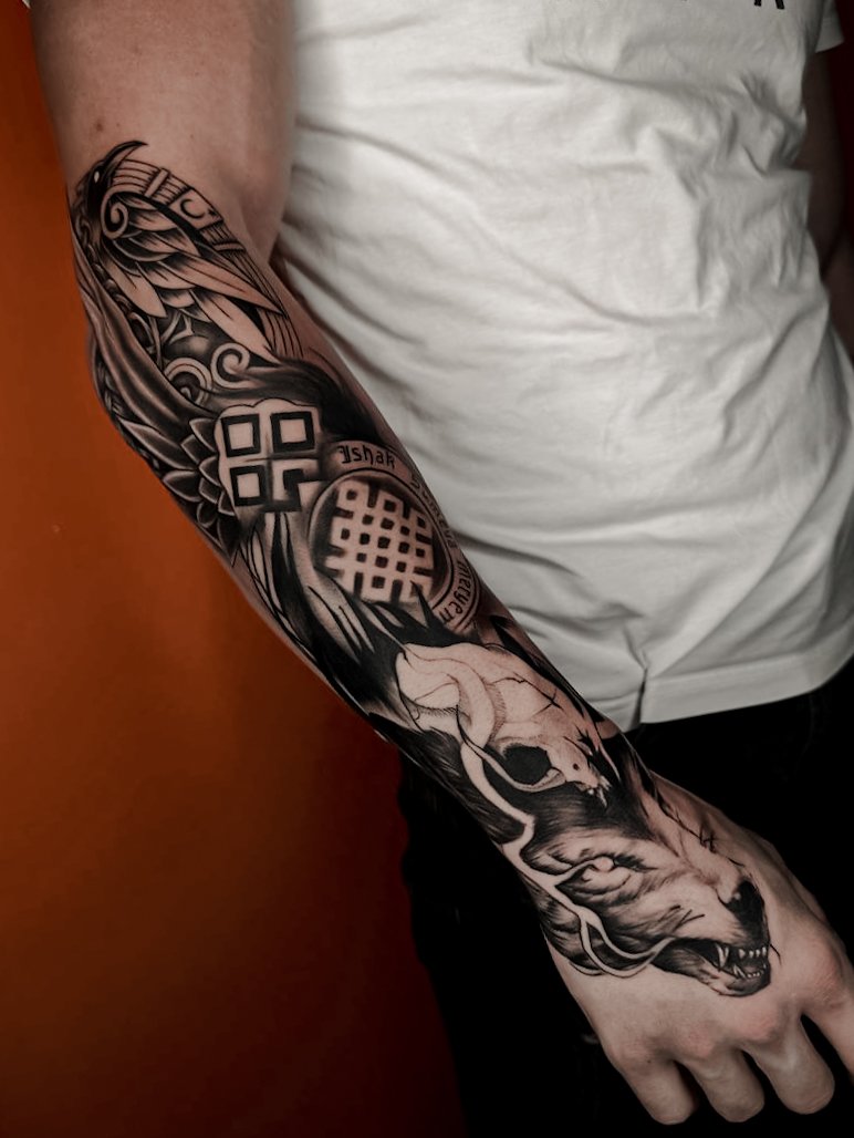 - Skandināvu raksti. Tetovējumi skandināvu stilā, ieskaitot runu un vikinga simbolus, bieži nozīmē aizsardzību, gudrību un saikni ar dabu. Tie arī var atspoguļot cieņu pret skandināvu mitoloģiju un vēsturi.