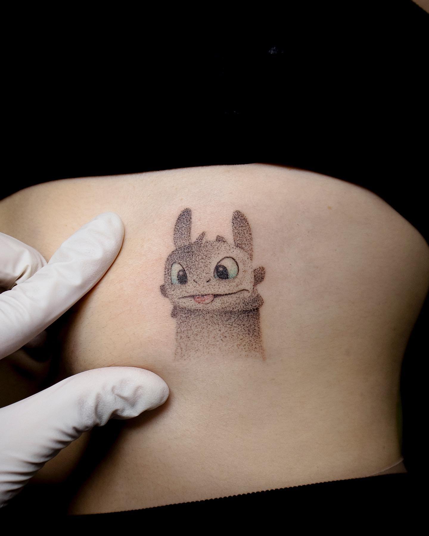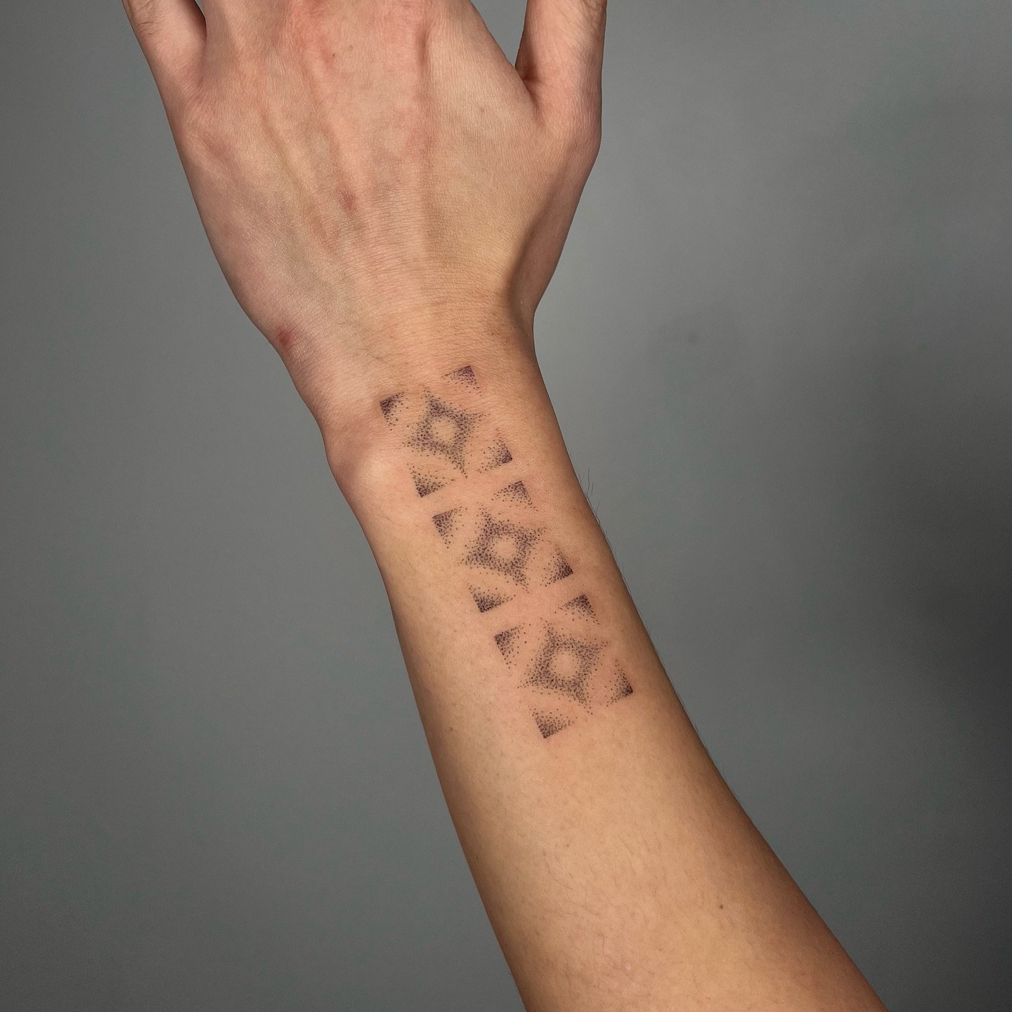 Во время процедуры тату-мастер последовательно и многократно прокалывает кожу иглой, смоченной в краске. Накопившиеся на коже точки формируют уникальный дизайн. Для передачи теней художники экспериментируют с размером точек и их расположением на разном расстоянии друг от друга.
