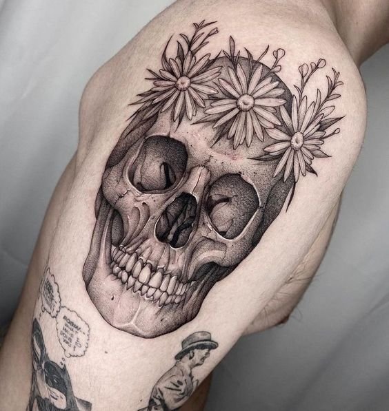 Tetovējumu stilos, tādos kā old school un čikano, tetovējumu attēli kļūst par slaveniem pateicoties Santa Muerte – meksikāņu nāves dievietei. Šeit sieviešu tetovējumi tiek izrotāti ar ziediem, radot apbrīnojamu harmoniju starp dzīvību un nāvi. Šādi tetovējumi simbolizē nepārvaramu dabas spēku, sajūtu skaistumu un atgādina mums, ka dzīve un nāve ir cieši saistītas. Tajā pašā laikā indiešu mitoloģijā galvaskausa tetovējums ir dzīves, tās ātrā ritējuma simbols, vēl viens atgādinājums par to, ka dzīvi ir svarīgi novērtēt un izbaudīt katru brīdi.