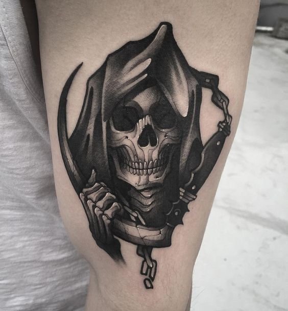 Bieži šādus tetovējumus izvēlas vīriešu un puiši, kas nebaidās no nāves, kam patīk adrenalīns un bīstamas izklaides. Pie šīs tipa var attiecināt arī galvaskausa tetovējumu ugunī – šāds bieži ir sastopams baikeru vidū. Nāves un attieksmes pret to tēma izpaužas tetovējumos, kur tiek attēlota Sieviete ar izkapti vai dažādos nāves tēlos dažādās kultūrās.
