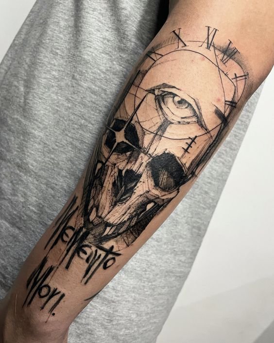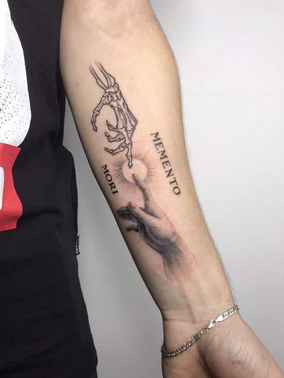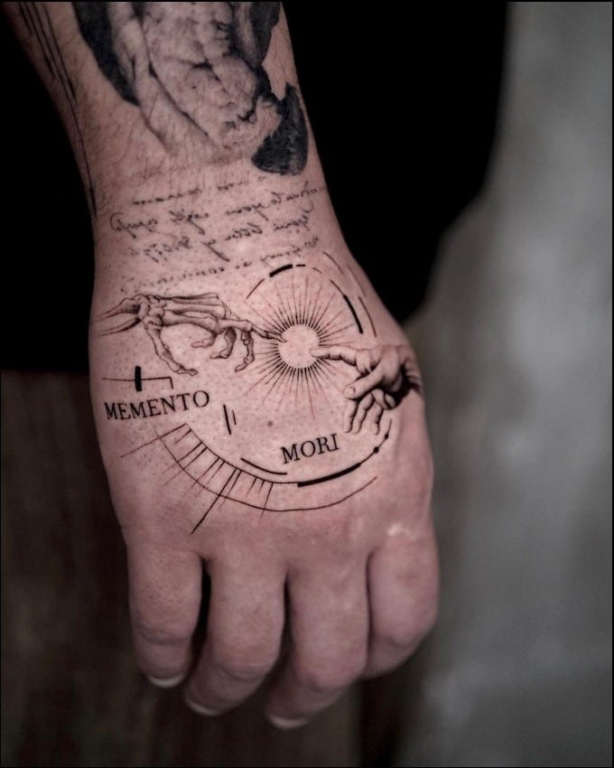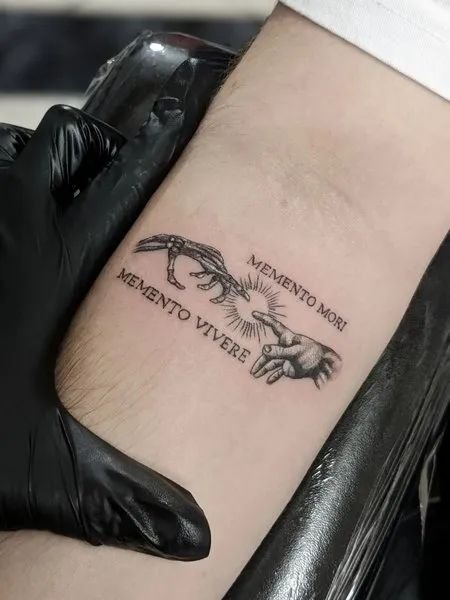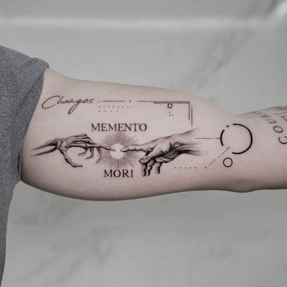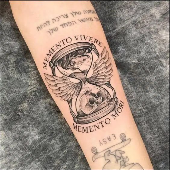 - Latīņu Frāzes: Apvienojot Memento Mori ar citām latīņu izteicieniem, piemēram, "Carpe Diem" vai "Tempus Fugit," tiek pastiprināta tetovējuma filozofiskā nozīme.