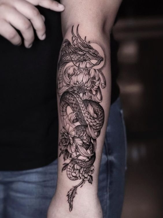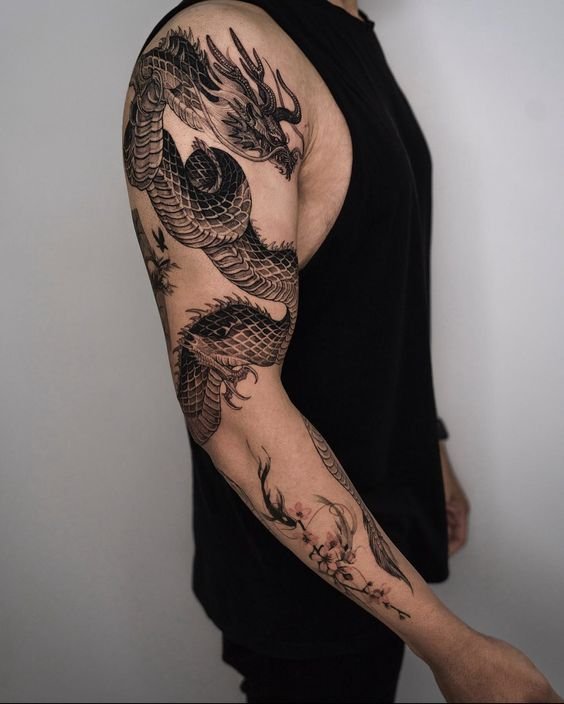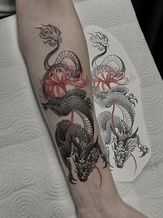 Šeit būs aktuāls Orientam stils, kurā valda melnā, sarkanā, zilā, zaļā krāsa. Pūķi var kombinēt ar augiem, ieročiem un citiem elementiem. Stils New School izcels tēlu ar biezām un smalkām kontūrām. Uzlabos kompozīciju ar krāsainām, stieptām līnijām. Tribal stils iepriecinās ar izliekumu, ģeometriskos ornamentu daudzveidību, atšķiras no citiem ar to, ka tam ir viens tonis.