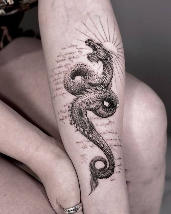 Taisot Pūķa tetovējumu, rodas iespēja paust savu raksturu, individuālās īpašības, unikālumu, neordinārus uzskatu. Pasūtīt jebkuras sarežģītības pakāpes tetovējumu var VeAn Tattoo salonu tīklā, kur strādā labākie meistari ar milzīgu pieredzi.