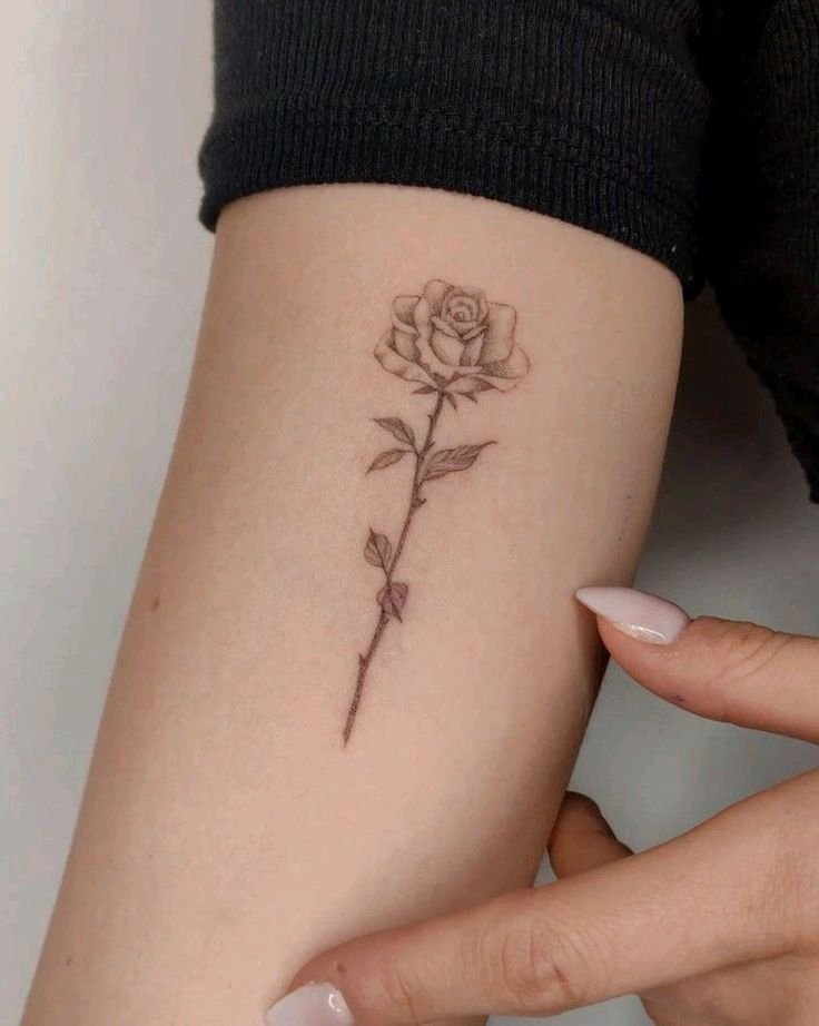 - Minimālisms: Vienkāršāku un ieturētāku dizainu cienītājiem būs piemērots minimālisma stils. Šādus rozes tetovējumu var izpildīt kā vienkāršus kontūru tēlus, vai izmantot smalkas melnas līnijas bez liekām detaļām.