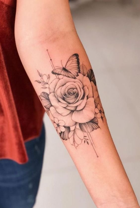 - Plecs un apakšdelms: šīs ķermeņa daļas ir lieliska virsma, lai izveidotu elegantus un detalizētus rozes tetovējumus.